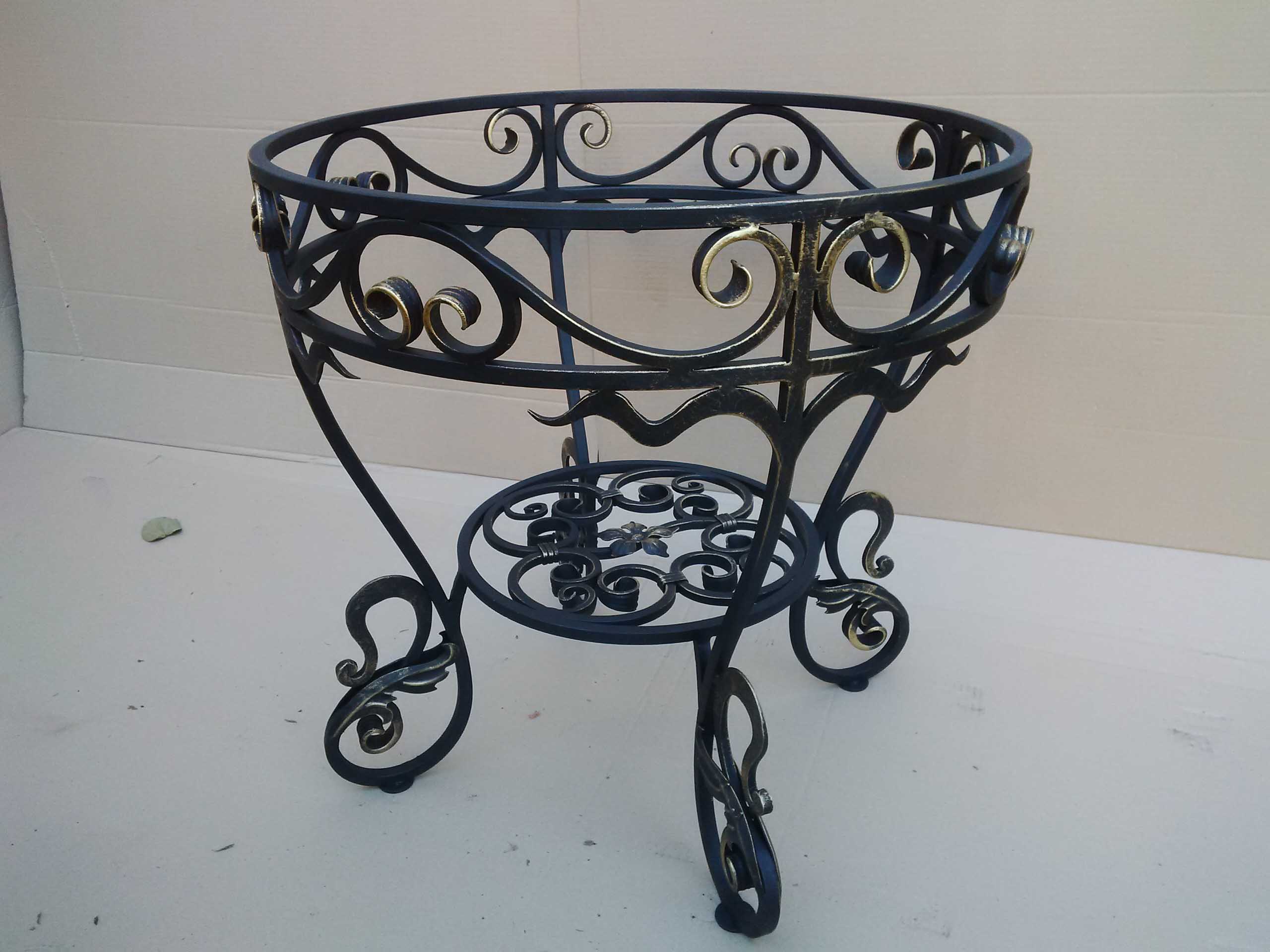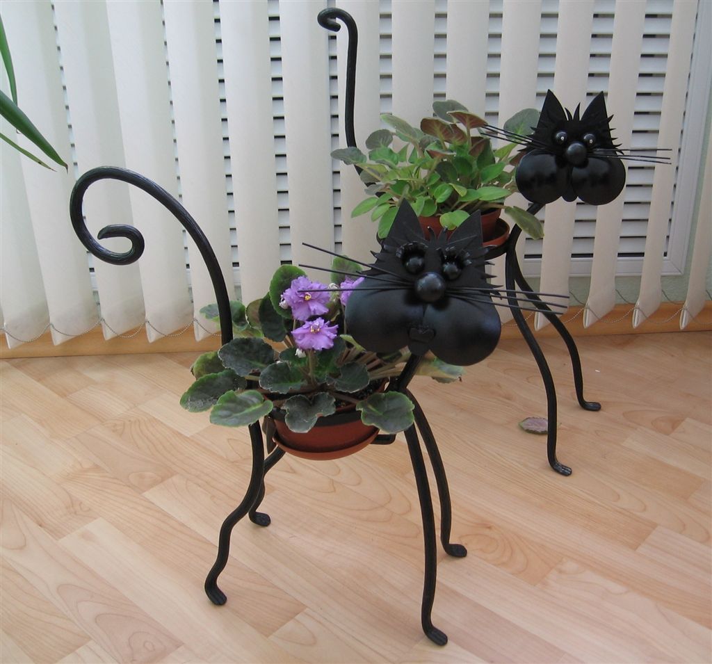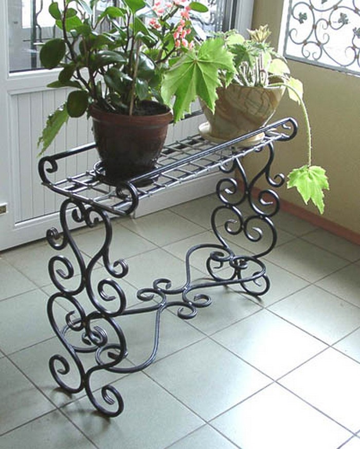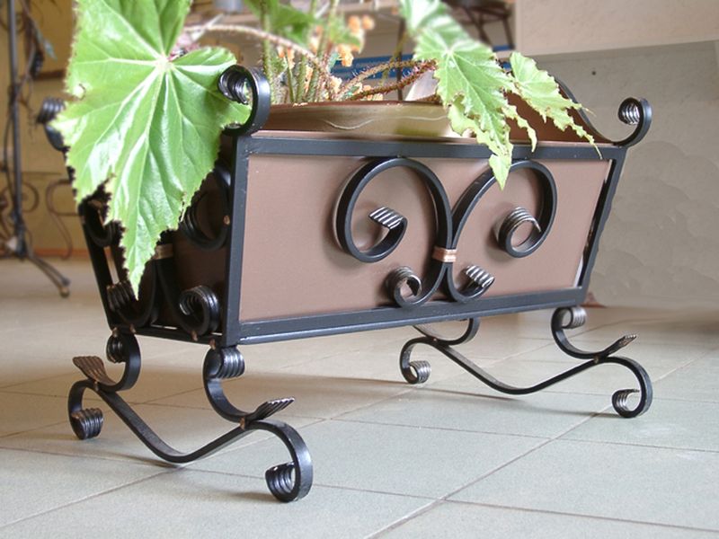 Существует несколько видов кованых цветочниц. Они могут быть представлены в виде напольных ваз, подставок для цветов, которые могут стоять на земле или крепиться к перилам балкона, а также свисать со стены как кашпо.