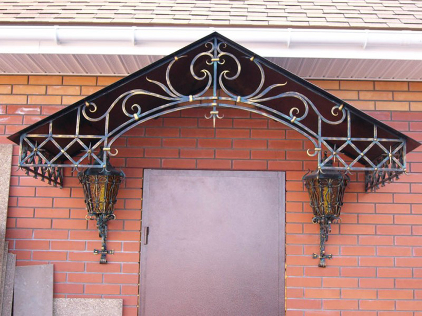 Возможно их изготовление по индивидуальным заказам, а также по эскизам самого заказчика. В конструкцию могут быть добавлены кованые фонари, которые не только освещают вход, но и выделяют весь ансамбль своим необычным художественным исполнением.